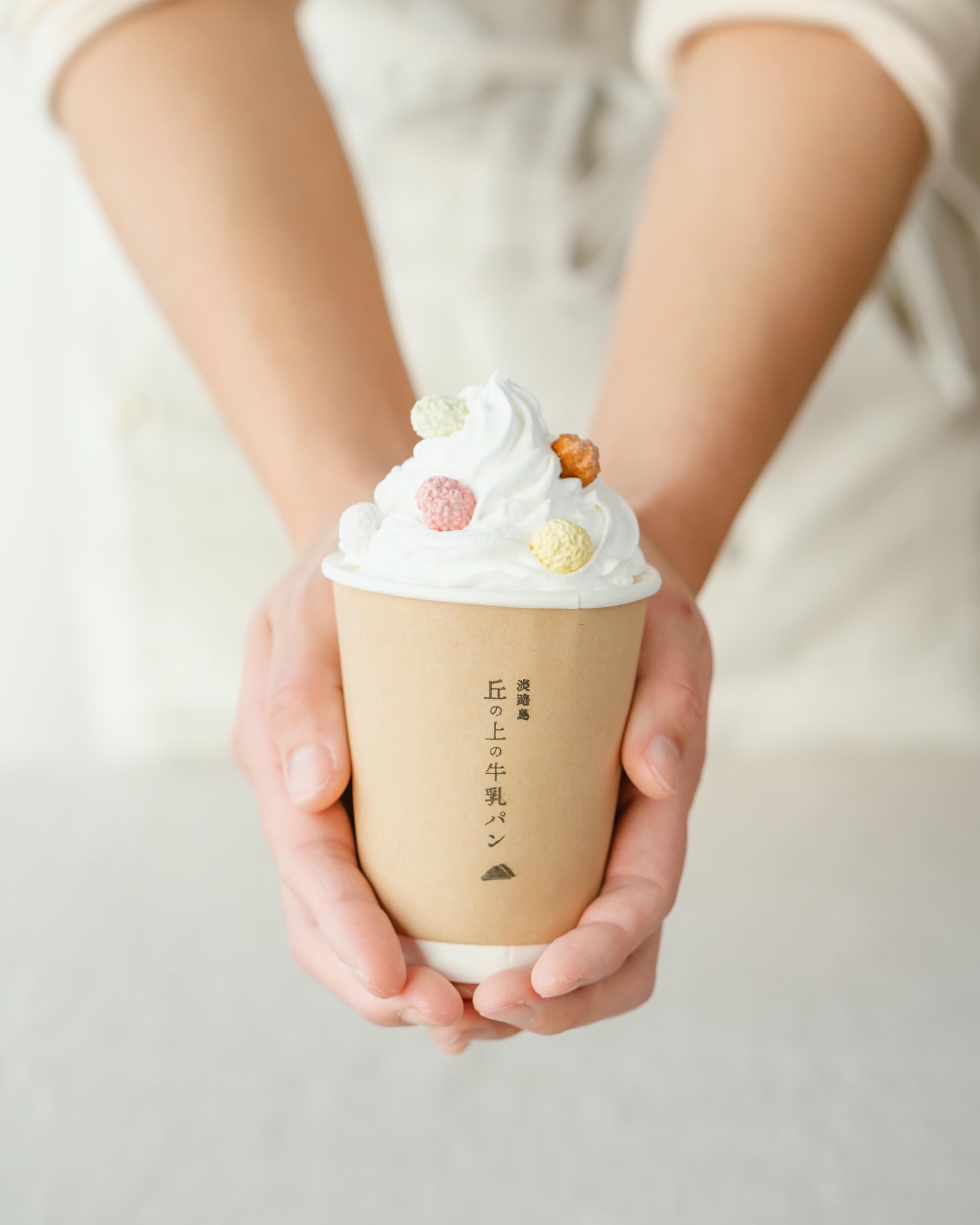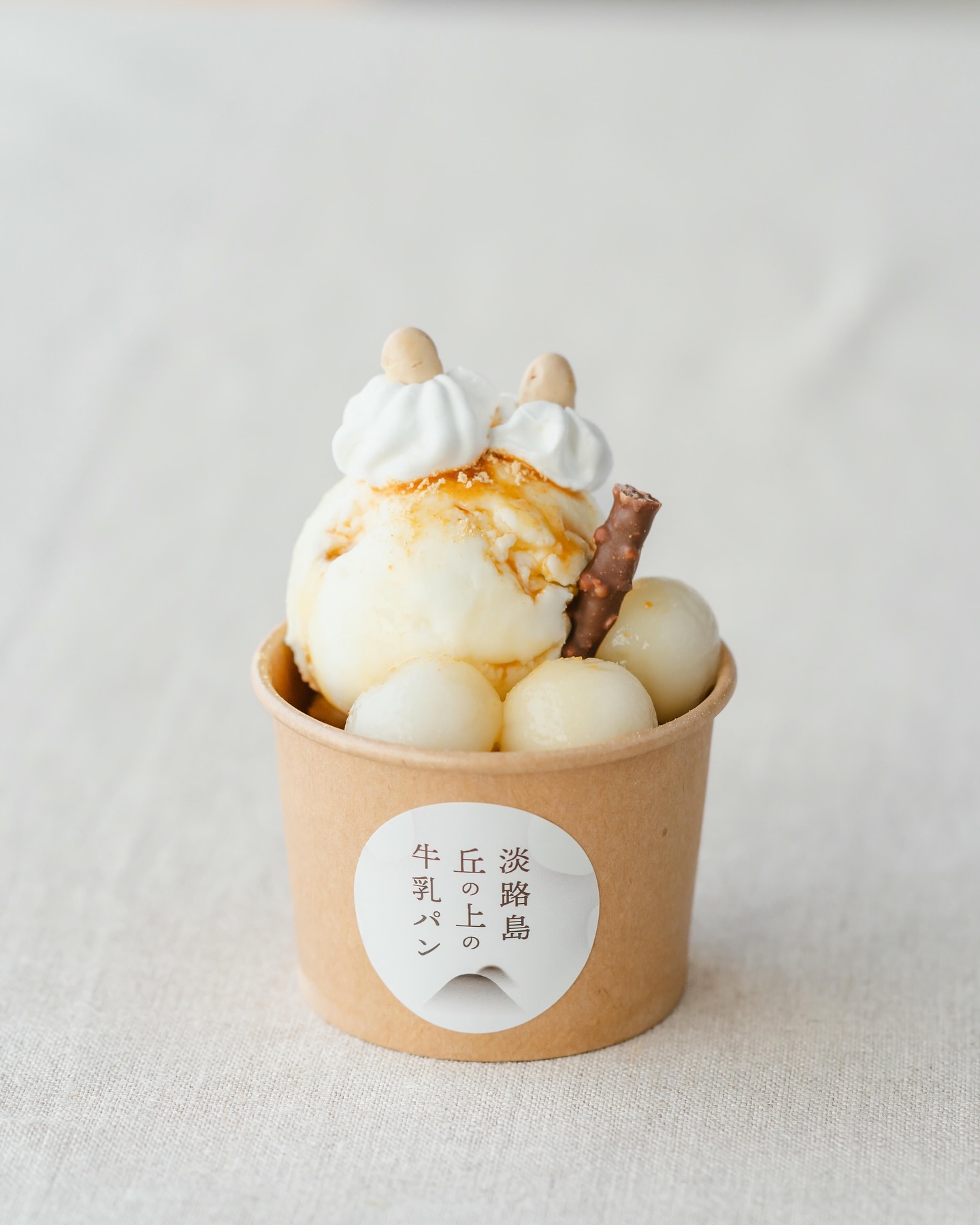 A cute ice cream cup representing an ogre. The milk bread is topped with a sticky texture shiratama (white bean curd), milk gelato transformed into an ogre, and accented with kuromitsu kinako (soybean flour). The rich Awajishima milk and kuromitsu kinako make this Japanese-style sweet an addictive treat.